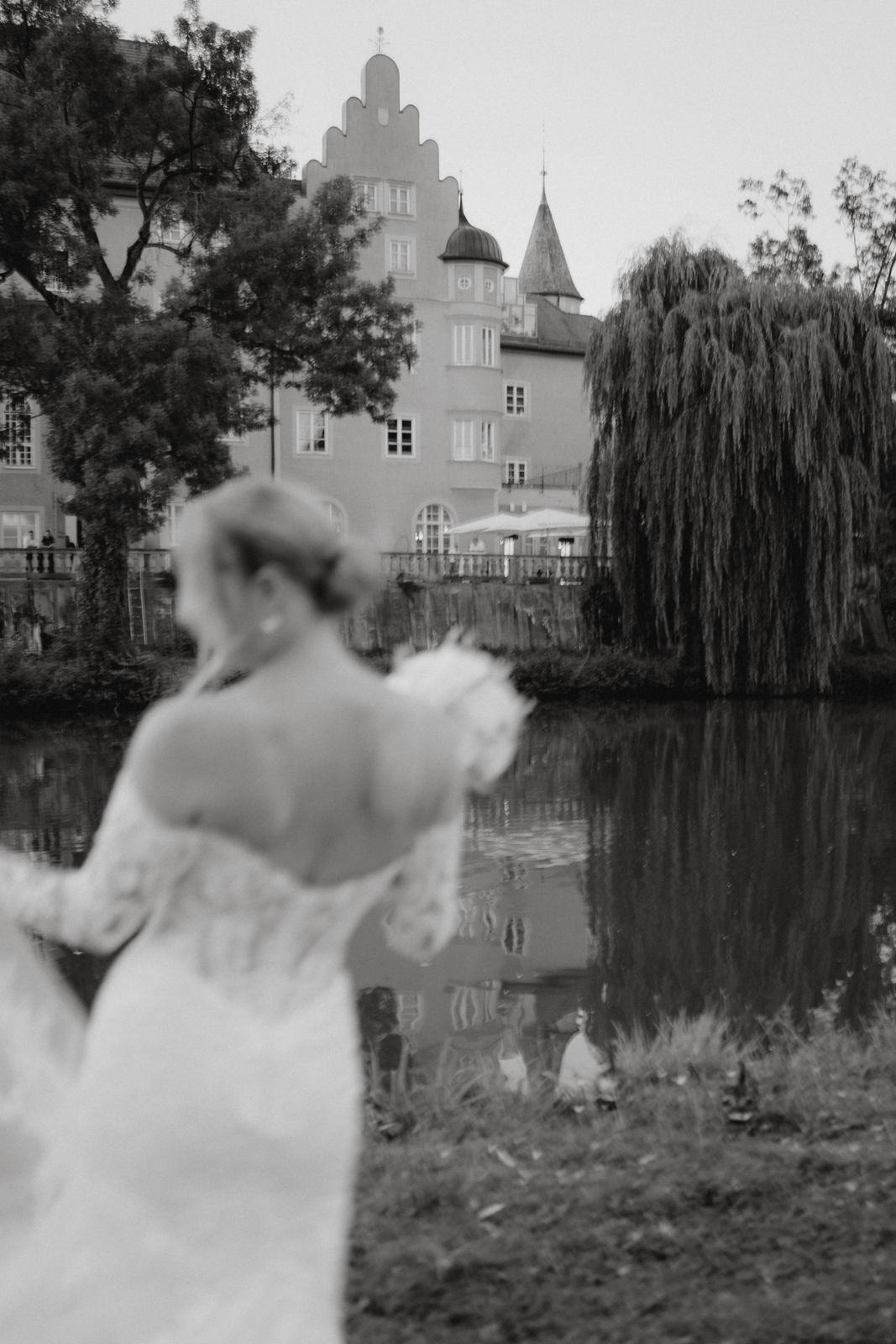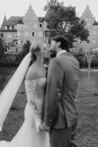 Die historische Kulisse des Wasserschlosses verleiht der Hochzeit eine zeitlose Atmosphäre. Klare Linien, ruhige Farben und architektonische Details bilden den Rahmen für eine Bildsprache, die bewusst reduziert bleibt und dennoch emotional tief wirkt. Der Fokus liegt auf Nähe, Berührungen und Blicken – auf all den kleinen Gesten, die diesen Tag einzigartig machen.