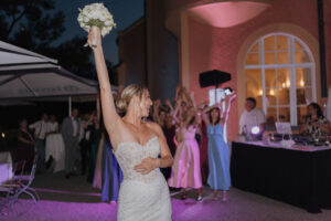 Ein besonderes Highlight bildet das Sonnenuntergangsshooting: In der warmen, weichen Abendstimmung entstehen ruhige, intime Porträts des Brautpaares. Das Licht legt sich sanft über die Szene, Bewegungen dürfen unscharf bleiben, Emotionen stehen im Vordergrund. Diese Bilder wirken entschleunigt, fast zeitlos – ein stiller Gegenpol zur Lebendigkeit der Feier.